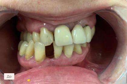 В результате нам удалось изменить положение зубов и восстановить разрушенные зубы. Пациент остался доволен проделанной работой.